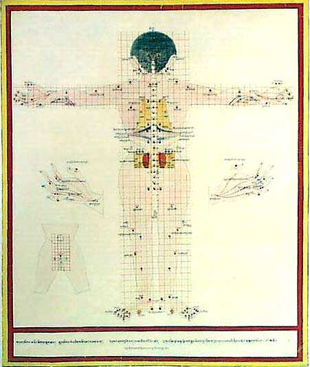 Chinesischen Akupunktur verwendet die Tibetische Medizin ein System